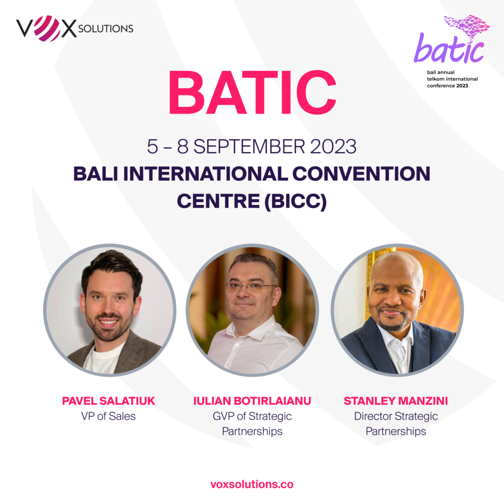 VOX SOLUTIONS is proudly supporting the BATIC 2023 event by Telin (PT Telekomunikasi Indonesia International) on the 5th and 8th of September 2023, held in Bali, Indonesia.