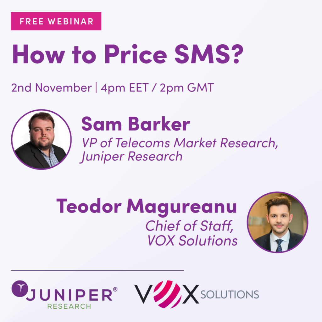 Teodor Magureanu, Chief of Staff at Vox Solutions, together with Sam Barker, VP of Telecoms Market Research, will guide you through the key considerations and best practices to ensure your SMS pricing aligns with market trends and customer expectations.