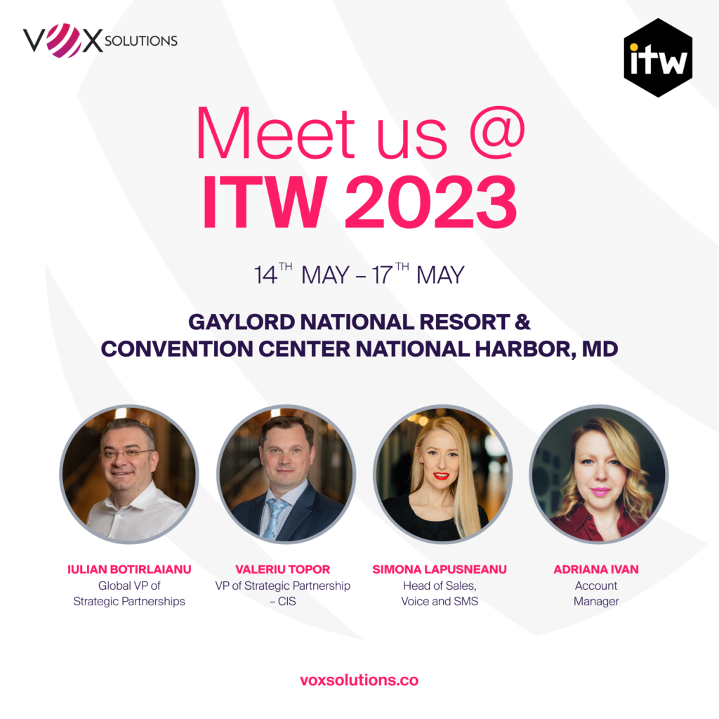 Our team of experts, Iulian Botirlaianu, Valeriu Topor, Simona Lapusneanu and Adriana Ivan, is looking forward to meet you and to exchange ideas about the future of A2P business. We are eager to introduce you to our latest solutions!